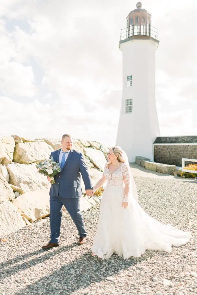 Allyssa and Mykel’s wedding at The Barker House was absolutely beautiful! Some of my favorite parts of their day were Allyssa’s gorgeous wedding dress and florals and taking photos at the Scituate Lighthouse.